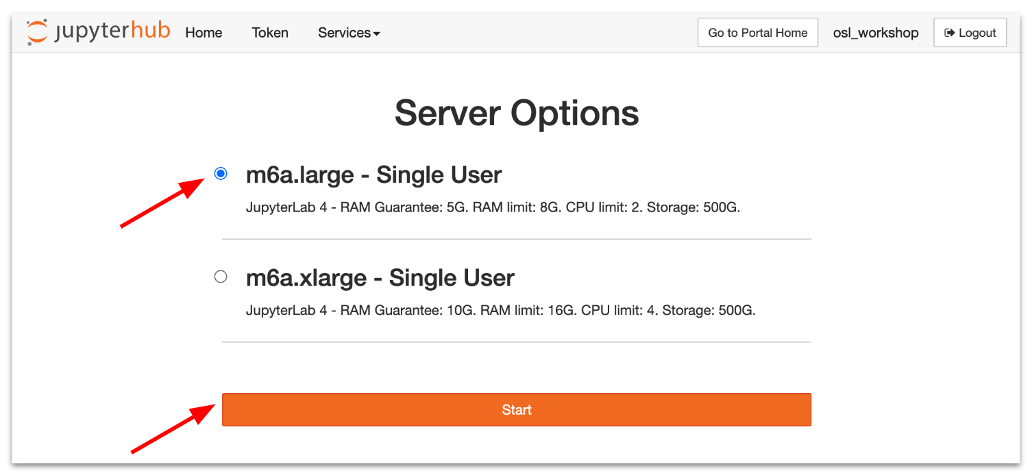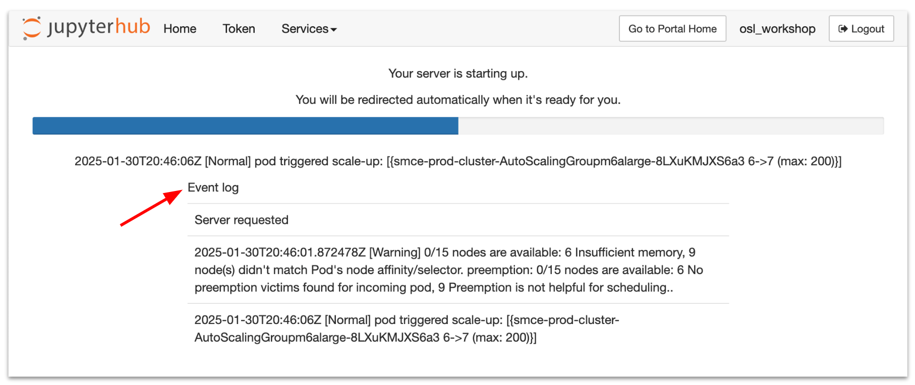 OpenSciencLabs are JupyterHubs running on Kubernetes clusters in the cloud. When a user starts a server, they are assigned a compute pod running JupyterLab on the cluster, their perisitent storage volume is mounted, and a script runs to help prepare their environment.