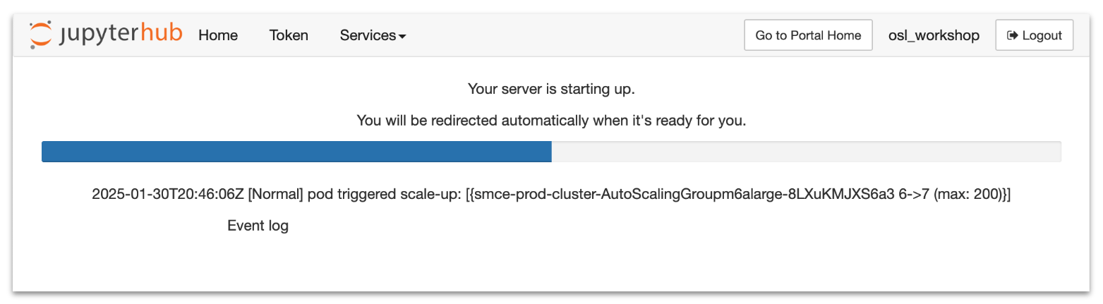 It may take several minutes for a server to start. When it has started, you will have access to a JupyterLab desktop.