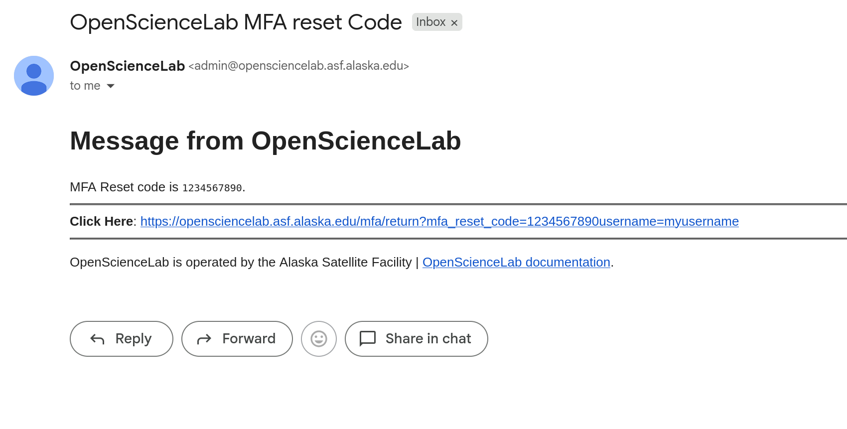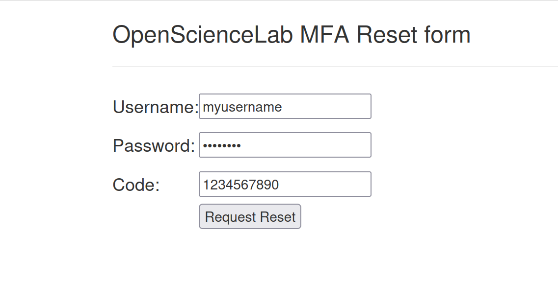 Back in OpenScienceLab, fill in your password to the MFA reset form