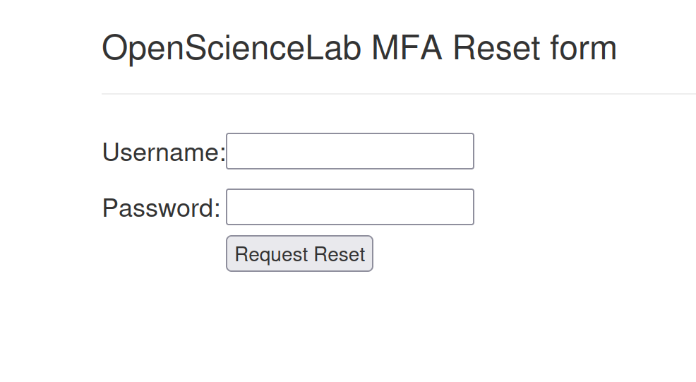 Fill out the MFA reset form with your username and password