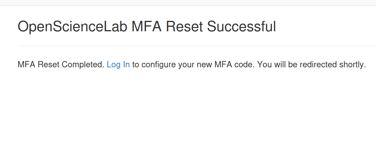 You should see a page indicating your MFA reset was successful