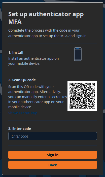 Follow the prompts for setting up MFA during OpenScienceLab account creation.