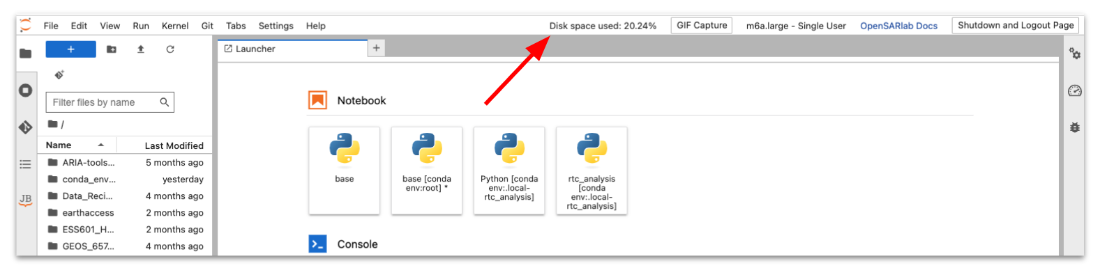 Assuming a lab has persistent storage, it occupies the user’s home directory (/home/jovyan).